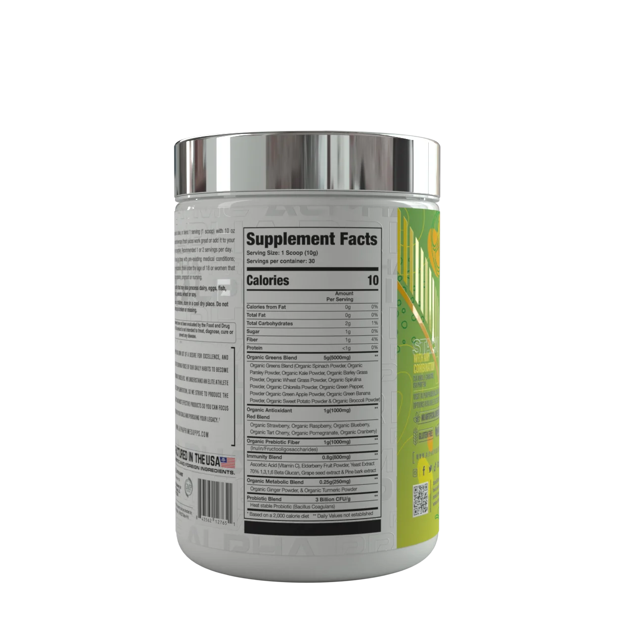 + Fruits. This supplement comes packed with a variety of 18 organic fruits and vegetables to aid your fitness goals by improving your overall digestive health. Overview Thanks to Greens