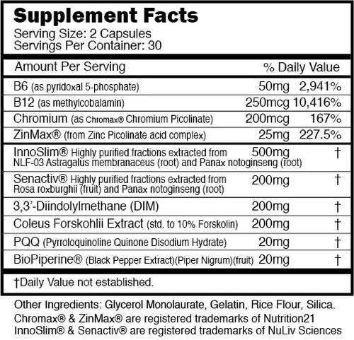 To further help improve energy optimization and body composition, CARDIBOL® also features DIM, Forskolin, PQQ, Chromax®, ZinMax®, B6, and B12. Finally, BioPerine® is included to optimize the absorption and utilization of the formula itself.*